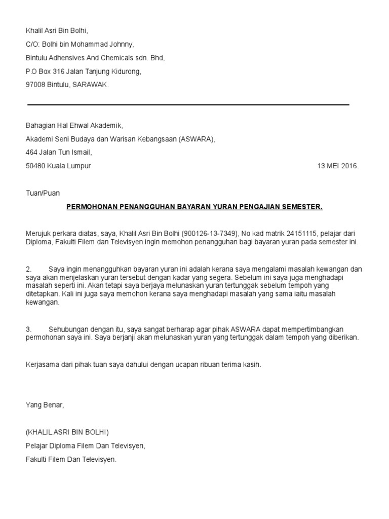 Contoh Karangan Surat Kiriman Rasmi Permohonan Biasiswa Peatix